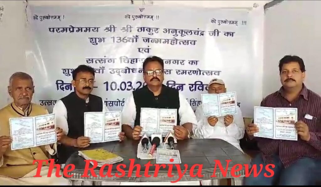 लौहनगरी जमशेदपुर में परम प्रेममय श्री श्री ठाकुर अनुकूल चंद्र जी के 136 वां जन्म उत्सव काशीडीह सत्संग विहार टाटानगर का 27 उद्बोधन दिवस हर्ष उल्लास के साथ जमशेदपुर के एग्रिको ट्रांसपोर्ट मैदान में किया जाएगा जिसकी तयारी जोरो से की जा रही है जिसे लेकर प्रेस वार्ता आयोजित कर कमिटी के सहप्रति रित्तिक भास्कर शरण ने बताया की10 मांर्च को होने वाली कोल्हान स्तरीय उत्सव के भब्य आयोजन के लिए तैयारी की जा रही है।जिसमे झारखंड के कई जिला सहित बंगाल व उड़ीसा से हजारों हजार की संख्या में रित्तिक व गुरु भाई शामिल होंगे। 10 मार्च की कार्यक्रम को सफल बनाने के लिए सभी गुरुभाई जूट गए है। सभा मे श्री श्री ठाकुर जी के जीवनी पर वक्ताओ के द्वारा अपनी बातों को विस्तार से रखेंगे। साथ ही मानव जीवन मे श्रीश्री ठाकुर अनुकूल चंद्र जी के दीक्षा के बाद मिलने वाले कई अहम जनकारी साझा किया जाएगा। वही कार्यक्रम स्थल मे भजन मंडली के द्वारा गीत प्रस्तुत की जाएगी। उज़के बाद मातृ सम्मेलन में सैकड़ो गुरु माँ शामिल होंगे।