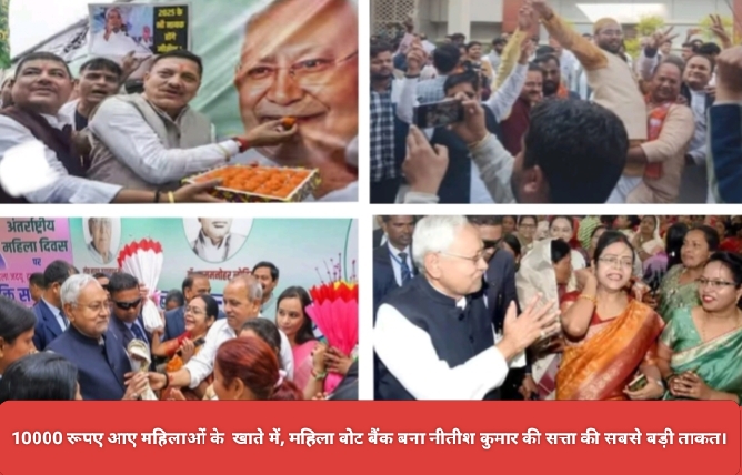 यह सीधा लाभ न केवल महिलाओं के आर्थिक सशक्तिकरण का माध्यम बना, बल्कि उनके जीवन में एक वास्तविक बदलाव की अनुभूति भी कराया। महिलाओं के लिए चलाई गई विभिन्न कल्याणकारी योजनाओं—जैसे जीविका समूह, सशक्तिकरण मिशन, छात्रा प्रोत्साहन, आरक्षण, और सुरक्षा उपाय—ने पहले ही नीतीश कुमार की छवि एक “महिला-हितैषी” नेता के रूप में स्थापित कर रखी थी। 10 हजार रुपये का सीधा हस्तांतरण इस छवि को और मजबूत करता दिखा। ग्रामीण इलाकों की महिलाएँ, जो अक्सर सीमित संसाधनों पर निर्भर रहती हैं, इस आर्थिक सहयोग से विशेष रूप से प्रभावित हुईं। नतीजतन वे बड़ी संख्या में मतदान केंद्रों तक पहुँचीं और अपनी पसंद साफ़तौर पर जताई। महिला मतदाताओं के इस मजबूत समर्थन ने न केवल नीतीश कुमार को ऐतिहासिक दसवीं पारी का रास्ता दिया, बल्कि यह भी संकेत दिया कि बिहार की राजनीति में अब महिलाएँ सिर्फ सहभागी नहीं, बल्कि सत्ता के निर्माण की धुरी बन चुकी हैं। आने वाले वर्षों में भी महिला मतदाताओं का यह रुझान राज्य की राजनीति में स्थायी प्रभाव छोड़ने वाला है।