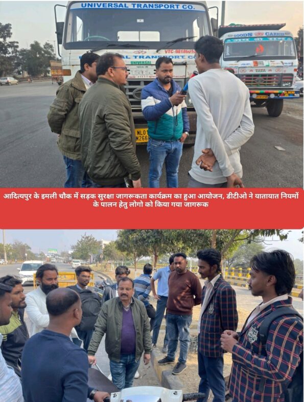 Saraikela (संजीव मेहता): राष्ट्रीय सड़क सुरक्षा माह–2026 के अंतर्गत आज गम्हरिया प्रखंड के आदित्यपुर नगर क्षेत्र स्थित इमली चौक में जिला परिवहन पदाधिकारी गिरजा शंकर महतो के नेतृत्व में सड़क सुरक्षा जागरूकता कार्यक्रम का आयोजन किया गया. कार्यक्रम का उद्देश्य आम जनमानस को सड़क सुरक्षा एवं यातायात नियमों के प्रति जागरूक करना तथा सड़क दुर्घटनाओं में प्रभावी कमी लाना था. इस अवसर पर नुक्कड़ नाटक के माध्यम से आम नागरिकों एवं वाहन चालकों को ड्राइविंग लाइसेंस के बिना वाहन चलाने, असुरक्षित एवं लापरवाह वाहन चालन तथा यातायात नियमों के उल्लंघन से होने वाले दुष्परिणामों के संबंध में जागरूक किया गया. साथ ही हिट एंड रन मामलों से संबंधित विधिक प्रावधान, गुड समैरिटन कानून तथा मोटरयान अधिनियम के अंतर्गत दंडात्मक प्रावधानों की जानकारी सरल एवं प्रभावी ढंग से दी गई. इस क्रम में यातायात नियमों का उल्लंघन करने वाले वाहन चालकों की काउंसलिंग की गई तथा मौके पर ऑनलाइन चालान की कार्रवाई भी की गई.