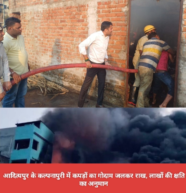 Saraikela (संजीव मेहता) : आदित्यपुर थाना क्षेत्र के वार्ड नंबर 23 स्थित कल्पनापुरी में शुक्रवार की दोपहर उस समय अफरा-तफरी मच गई, जब रोड नंबर-2 स्थित एक मकान में भीषण आग लग गई. घटना शाम लगभग 3:45 बजे की बताई जा रही है. जानकारी के अनुसार, मकान संख्या 139/88, जो अक्षय कुमार का है, उसकी तीसरी मंजिल पर बने कपड़ों के गोदाम में अचानक आग भड़क उठी.