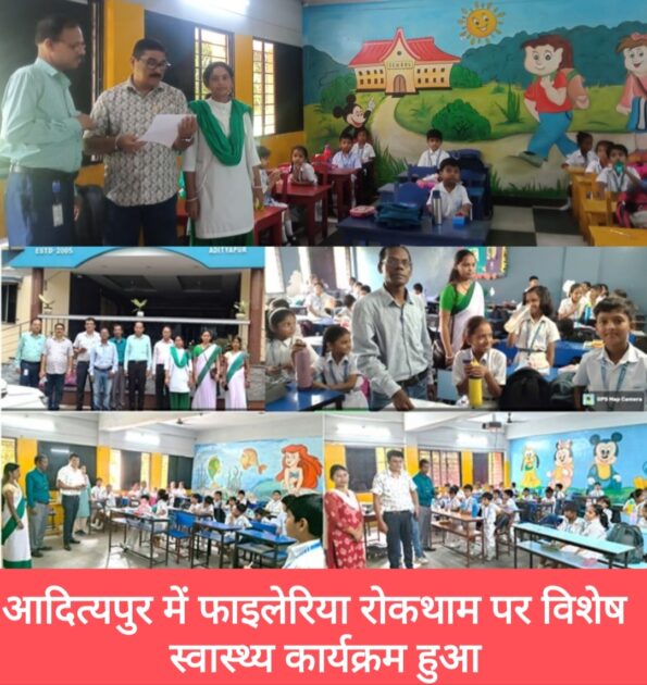 Saraikela (संजीव मेहता) : 22 सितम्बर 2025 को आदित्यपुर में फाइलेरिया रोकथाम पर एक विशेष स्वास्थ्य कार्यक्रम का सफल आयोजन किया गया. यह कार्यक्रम सामुदायिक स्वास्थ्य केंद्र, गम्हरिया (झारखंड सरकार) के योग्य स्वास्थ्य विशेषज्ञों के द्वारा चलाया गया. जिसमें मोहम्मद नसीमुद्दीन, आनंद भूषण सिंह, संजय कुमार, मुन्ना तमसोय, मुनीराम महतो, आमना खातून, कल्पना महतो और शोभा देवी ने सहयोग किया. इस कार्यक्रम का उद्देश्य छात्रों में फाइलेरिया से बचाव के प्रति जागरूकता फैलाना और उन्हें रोग-निवारक दवा उपलब्ध कराना था.