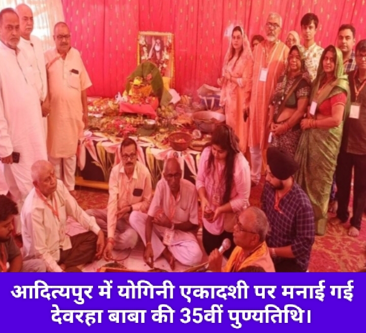 सरायकेला : आदित्यपुर में परमपिता श्री 1008 देवरहा बाबा की 35वीं पुण्यतिथि योगिनी एकादशी के दिन श्रद्धा और भक्ति की अपार अनुभूति लेकर आई। देवरहा बाबा परिवार ट्रस्ट के अध्यक्ष बिंदेश्वर झा की देख‑रेख में यह आयोजन आदित्यपुर पान दुकान चौक पर सम्पन्न हुआ। विशेष पूजन, हवन‑यज्ञ और आरती के पश्चात भक्तों के लिए भंडारे का आयोजन किया गया।