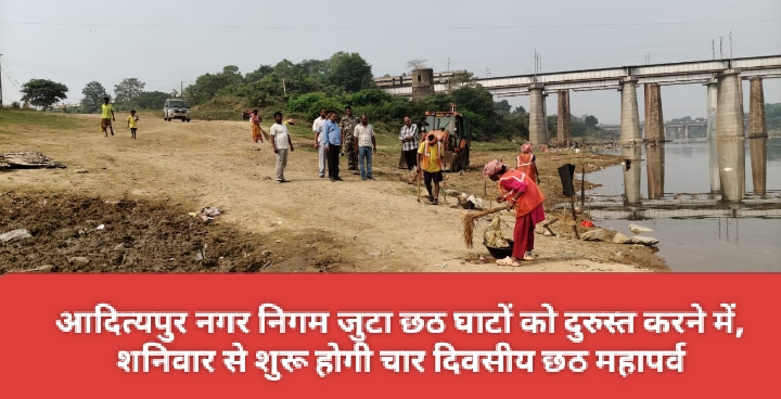 बता दें कि आदित्यपुर नगर निगम क्षेत्र में प्रमुख रूप से लगभग 26 छठ घाट हैं, जिसमें आदित्यपुर खरकाई ब्रिज का उत्तरी एवं दक्षिणी भाग, नगीनापूरी छठ घाट, मांझी टोला छठ घाट, सालडीह छठ घाट, भाटिया – बेलडीह छठ घाट, दो मुहानी सापड़ा छठ घाट, सतबहिनी श्री डूंगरी छठ घाट, गम्हरिया ब्लॉक के पीछे छठ घाट, भोजपुर कॉलोनी छठ घाट, जमुना बांध छठ घाट, जयप्रकाश उद्यान छठ घाट, राम मड़ैया छठ घाट, घोड़ा बाबा के पीछे तालाब छठ घाट, जमालपुर लोहार तालाब छठ घाट, रोड नंबर 32 छठ घाट, रोड नंबर 7 एवं 8 छठ घाट, रोड नंबर 14 कुलुप्टाँगा छठ घाट, बंता नगर छठ घाट, वास्तु विहार छठ घाट, वास्तु विहार ईटा भट्ठा छठ घाट, सीतारामपुर डैम छठ घाट, आसंगी छठ घाट ट्रांसपोर्ट कॉलोनी छठ घाट आदि शामिल है.