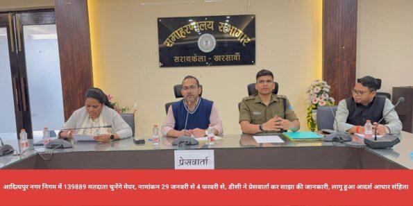 Saraikela (संजीव मेहता) : आदित्यपुर नगर निगम में करीब ढाई वर्षों के बाद निकाय चुनाव होने जा रहे हैं. इस बार क चुनाव में वर्ष 2024 के मतदाता सूची के आधार पर ही मतदान होगा, जिसमें कुल 139889 मतदाता मेयर का चुनाव करेंगे. इस बात की जानकारी डीसी नीतीश कुमार सिंह ने बुधवार को प्रेसवार्ता कर दी. उन्होंने बताया कि नामांकन की प्रक्रिया कल 29 जनवरी से 4 फरवरी तक सुबह 11 बजे से शाम 3 बजे तक चलेगी. डीसी ने प्रेसवार्ता में बताया पूरे नगर निगम आदित्यपुर के साथ सरायकेला नगर पंचायत के साथ कपाली नगर पर्षद क्षेत्र में कल अधिसूचना जारी होने के बाद से ही आदर्श आचार संहिता लागू है, जिसका सभी नागरिकों को अनुपालन करना है.