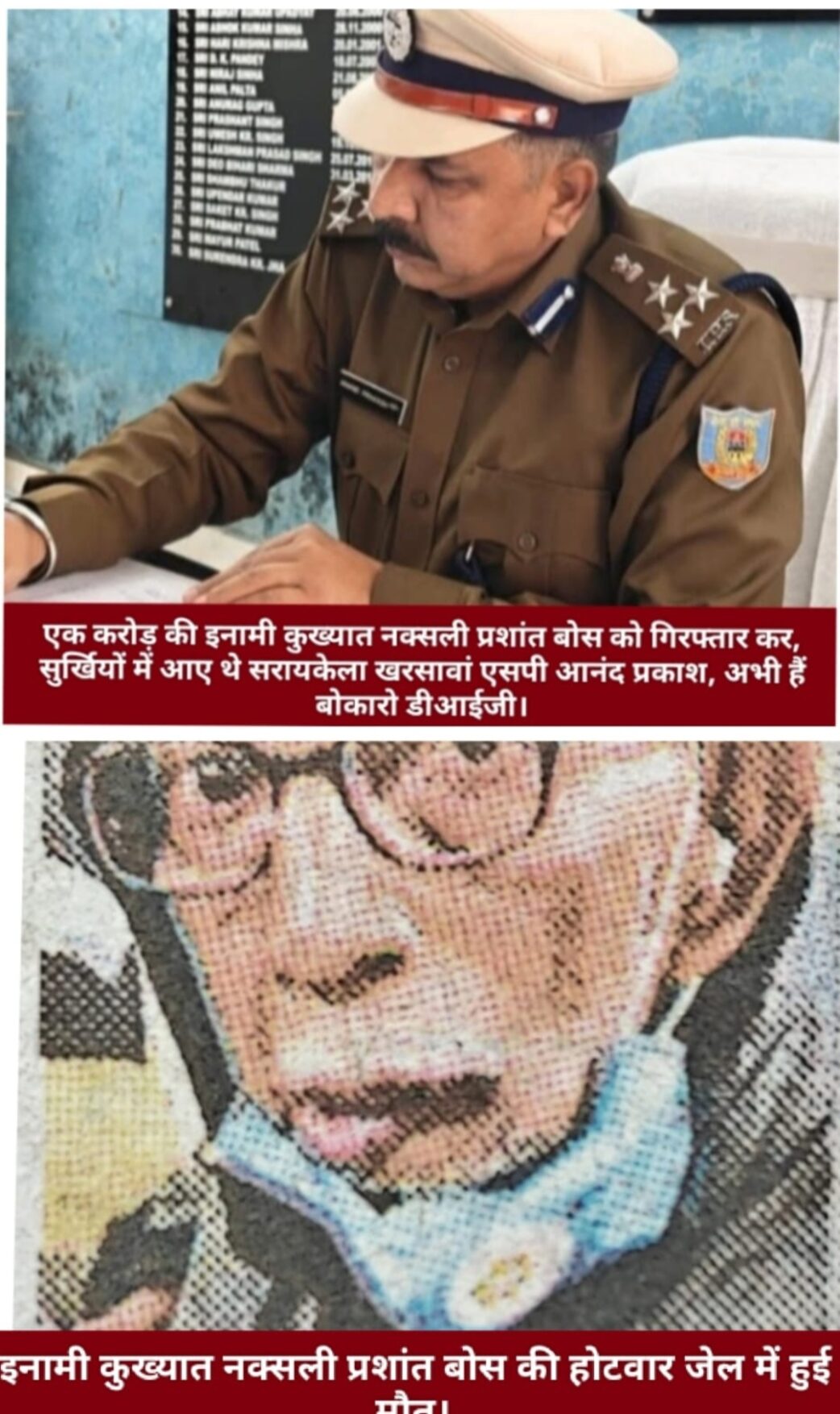 रांची: एक करोड़ के इनामी कुख्यात नक्सली प्रशांत बोस, जिन्हें नक्सल आंदोलन के शीर्ष नेताओं में गिना जाताह। था।उनका रांची के होटवार जेल में मृत्यु हो गया। प्रशांत बोस लंबे समय से विभिन्न राज्यों की पुलिस और केंद्रीय एजेंसियों के लिए सबसे वांछित नक्सलियों में शामिल था। उन पर कई राज्यों में गंभीर आपराधिक मामले दर्ज थे और उनकी गिरफ्तारी के लिए सरकार ने एक करोड़ रुपये का इनाम घोषित किया था। प्रशांत बोस की गिरफ्तारी सरायकेला खरसावां के तेज तर्रार कर्मठ मधुर भाषी और अपने कर्तव्य के प्रति कर्तव्यनिष्ठ अपराधियों और नक्सलियों पर कहर बनकर बरसने वाले पुलिस अधीक्षक आनंद प्रकाश के नेतृत्व ने प्रशांत बॉस को 12 नवंबर 2021 को सरायकेला के गीतल बेड़ा टोल प्लाजा से गिरफ्तार कर एक बहुत बड़ी उपलब्धि और सफलता हासिल की थी। जिसकी सफलता और उपलब्धियां की चर्चा देश की हर राज्यों के कोने-कोने में पुलिस विभाग में व्यापक रूप से रही है। पुलिस अधीक्षक आनंद प्रकाश ने बड़े ही नाटकीय और काफी गोपनीय तरीके से प्रशांत बोस के गिरफ्तारी को अंजाम दिया था।पुलिस अधीक्षक आनंद प्रकाश ने सटीक सूचना के आधार पर कार्रवाई करते हुए , बड़े नक्सली नेता प्रशांत बोस को गिरफ्तार किया था। इस उपलब्धि के लिए एसपी आनंद प्रकाश को सरकार द्वारा सम्मानित करते हुए इनाम भी दिया गया है। यह गिरफ्तारी नक्सल विरोधी अभियान में एक महत्वपूर्ण मोड़ साबित हुई थी।