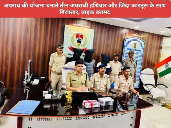 पुलिस की गिरफ्त में आए अपराधियों में विरेंद्र सिंह कुंतीया, पिंटू कुमार रक्षित और आकाश हेम्ब्रम शामिल हैं. पुलिस ने इनके पास से एक अवैध देसी पिस्टल, 9 एमएम की एक जिंदा गोली, चार मोबाइल, एक एयरपोड, एक चिलम और घटना में प्रयुक्त स्प्लेंडर मोटरसाइकिल बरामद किया है. एसपी मुकेश कुमार लुणायत ने बताया कि उन्हें सूचना मिली कि ये लोग हथियार के साथ एक घर में घुसने की कोशिश कर रहे हैं. इनकी मंशा लूटपाट की बड़ी घटना को अंजाम देने की है. उसके बाद एक एसआईटी का गठन किया गया. एसआईटी ने त्वरित कार्रवाई करते हुए तीनों को ईचा