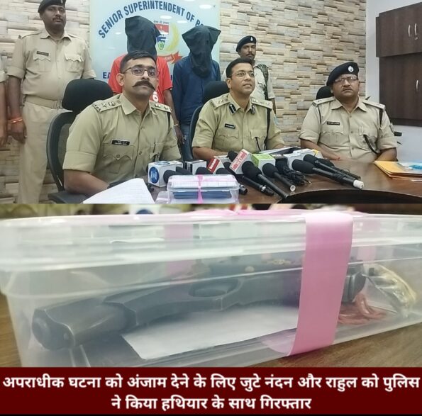 जमशेदपुर : एमजीएम थाना क्षेत्र में बीते दिन किसी अपराधी घटनाओं का अंजाम देने के लिए जुटे दो अपराधियों को पुलिस ने पिस्टल गोली के साथ गिरफ्तार किया है।इस संबंध में एसएसपी ने जानकारी दी की बीते दिन दोपहर में गुप्त सूचना मिली कि कुछ अपराधी गोडगोडा चौक के समीप बालिगुमा उत्क्रमित विद्यालय के सुनसान जगह पर किसी अपराधिक घटना को अंजाम देने के लिए कुछ अपराधी जुटे हुए हैं, जिसके बाद एक टीम गठित कर वहां छापामारी की गई जहां से दो अभियुक्तों को हिरासत में लेकर तलाशी ली गई जिनके पास से एक देशी पिस्तौल और मैगजीन का गोली बरामद की गई।