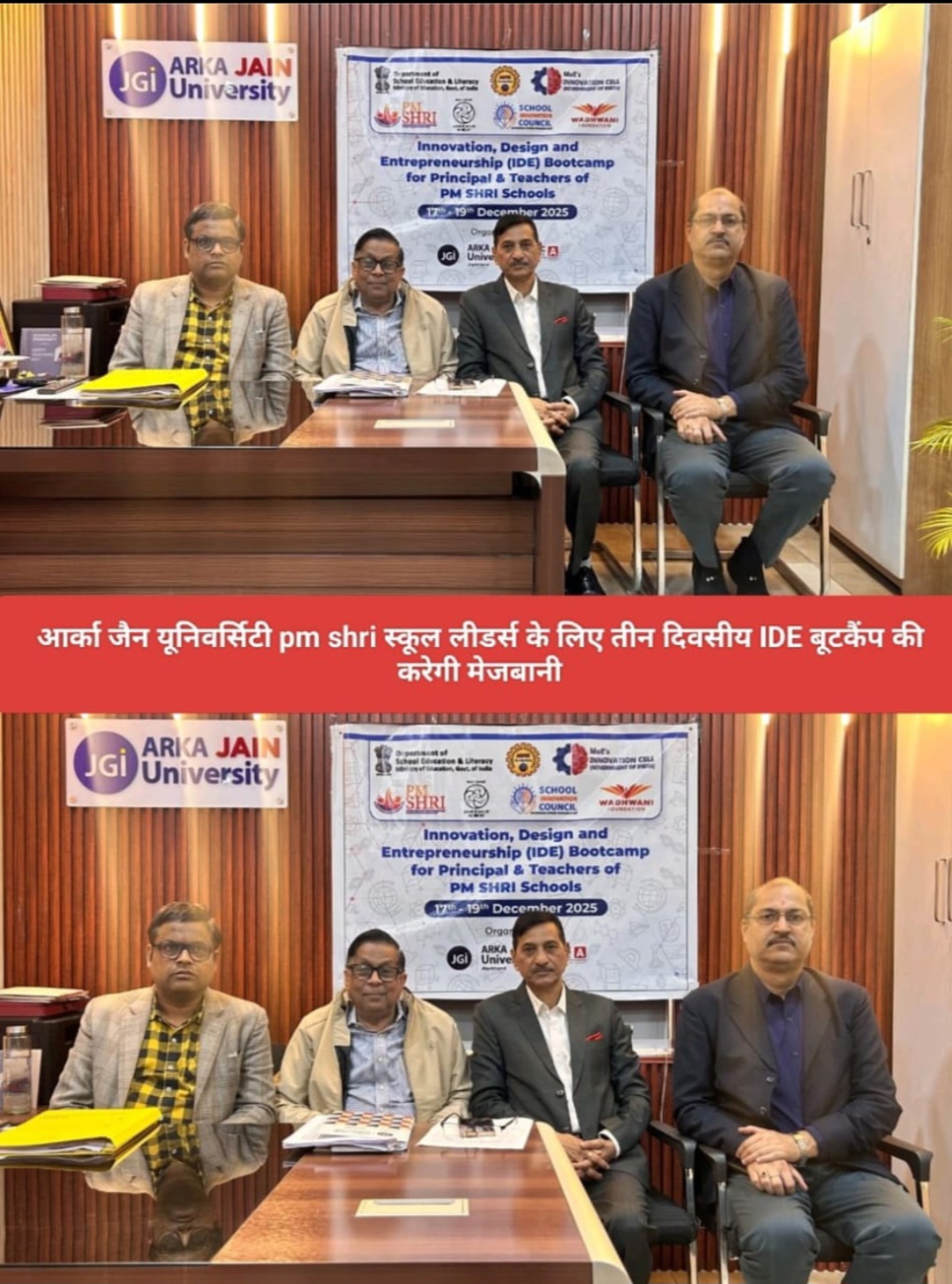 अरका जैन यूनिवर्सिटी: जमशेदपुर: ऑल इंडिया काउंसिल फॉर टेक्निकल एजुकेशन (AICTE) एवं शिक्षा मंत्रालय के इनोवेशन सेल (MIC) के सहयोग से 17 से 19 दिसंबर 2025 तक इनोवेशन, डिज़ाइन एवं एंटरप्रेन्योरशिप (IDE) बूटकैंप का आयोजन करने जा रही है। इस राष्ट्रीय स्तर के बूटकैंप का उद्देश्य PM SHRI +2 स्कूलों के शैक्षणिक नेतृत्व को नवाचार और उद्यमिता से जोड़ना है। यह तीन दिवसीय ट्रांसफॉर्मेटिव कार्यक्रम डॉ. अश्विनी कुमार, नोडल सेंटर हेड (SPOC), के नेतृत्व में आयोजित किया जाएगा, जिसमें इस क्षेत्र के PM SHRI +2 स्कूलों के प्रिंसिपल एवं हेडमास्टर सहित लगभग 200 प्रतिभागी भाग लेंगे।