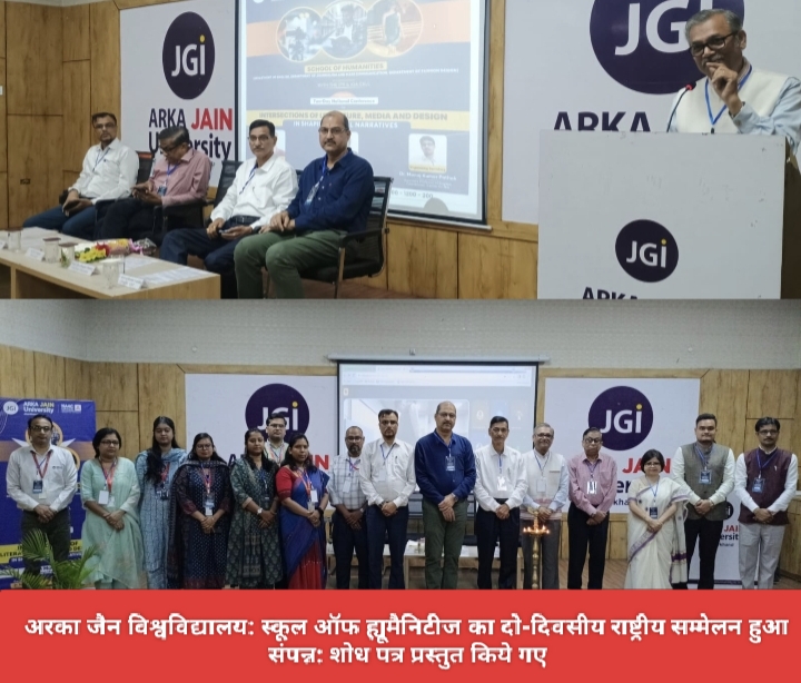 जमशेदपुर:अरका जैन विश्वविद्यालय के स्कूल ऑफ ह्यूमैनिटीज के अंतर्गत अंग्रेज़ी विभाग, पत्रकारिता एवं जनसंचार विभाग तथा फैशन डिज़ाइन विभाग के संयुक्त तत्वावधान में 13 एवं 14 मार्च 2026 को “इंटेरसेक्शन्स ऑफ़ लिटरेचर, मीडिया एंड डिज़ाइन इन शेपिंग सोशल नेरेटिभस” विषय पर दो दिवसीय राष्ट्रीय सम्मेलन का सफल आयोजन किया गया। इस सम्मेलन का उद्देश्य साहित्य, मीडिया और डिज़ाइन के पारस्परिक संबंधों के माध्यम से समाज में निर्मित हो रहे विभिन्न आख्यानों पर विमर्श करना था। सम्मेलन का आयोजन हाइब्रिड मोड में किया गया, जिसमें ऑफलाइन तथा ऑनलाइन दोनों माध्यमों से प्रतिभागियों ने सहभागिता की।