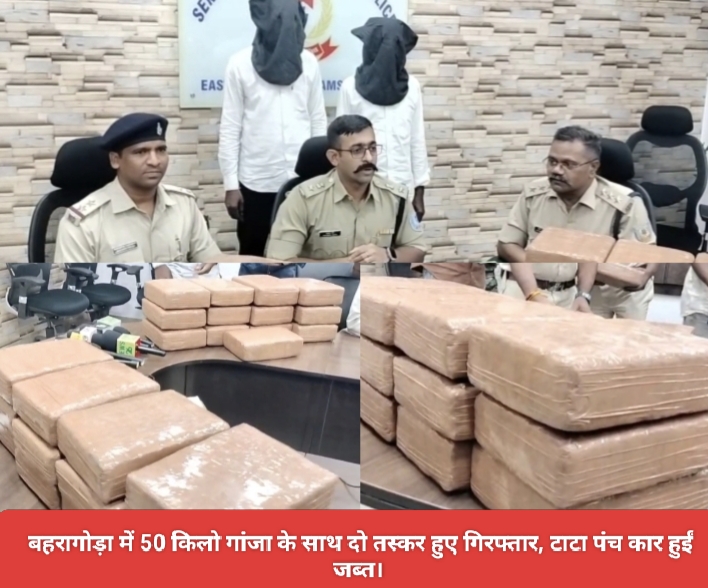 जमशेदपुर : पूर्वी सिंहभूम पुलिस को मिली गुप्त सूचना के आधार पर बहरागोड़ा क्षेत्र में बड़ी कार्रवाई करते हुए 50 किलो अवैध गांजा के साथ दो तस्करों को गिरफ्तार किया गया है। जब्त गांजा की अनुमानित कीमत करीब 25 लाख रुपये बताई जा रही है। वरीय पुलिस अधीक्षक, पूर्वी सिंहभूम जमशेदपुर को सूचना मिली थी कि उड़ीसा की ओर से एक भूरा रंग का टाटा पंच (रजिस्ट्रेशन नंबर JH05DS-6333) में अवैध गांजा लेकर कुछ अपराधी बहरागोड़ा की ओर आ रहे हैं।