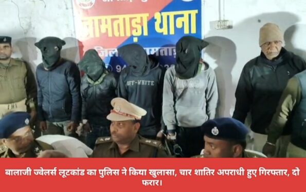 रांची : जामताड़ा थाना क्षेत्र अंतर्गत कायस्तपाड़ा चौक के समीप स्थित बालाजी ज्वेलर्स में 24 दिसंबर 2025 की संध्या करीब 6 बजे हुई लूट एवं फायरिंग की सनसनीखेज वारदात का जामताड़ा पुलिस ने सफल उद्भेदन कर लिया है। इस मामले में पुलिस ने चार शातिर अपराधियों को गिरफ्तार किया है, जबकि दो अपराधी अब भी फरार हैं, जिनकी गिरफ्तारी के लिए लगातार छापेमारी की जा रही है।