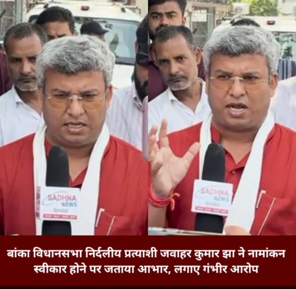 बांका, बिहार : बांका विधानसभा क्षेत्र से निर्दलीय प्रत्याशी और जनसेवक जवाहर कुमार झा ने अपना नामांकन पत्र स्वीकार होने पर बांका के सभी शुभचिंतकों, कार्यकर्ताओं और आम जनता का आभार व्यक्त किया है। नामांकन स्वीकार होने के बाद मीडिया से बात करते हुए उन्होंने कहा, “मेरा नामांकन स्वीकृत हो गया है।” हालांकि, उन्होंने इसी के साथ कुछ गंभीर आरोप लगाए हैं। उन्होंने कहा कि उनके प्रतिद्वंद्वी रामनारायण जी (संभवतः किसी पार्टी के उम्मीदवार) के खिलाफ कुछ अनियमितताओं के ऑब्जर्वेशन्स पब्लिक में आए थे। उन्होंने आरोप लगाया कि उनके प्रतिद्वंद्वी ने फॉर्म में अपनी उम्र और घर का पता छुपाया है, और अलोकतांत्रिक शब्दों का इस्तेमाल किया है, जो नामांकन फॉर्म में चुनाव आयोग के अनुसार नहीं लिखे जाने थे।जवाहर कुमार झा ने यह भी आरोप लगाया कि प्रतिद्वंद्वी ने शैक्षणिक योग्यता छुपाई है और फॉर्म में “लागू नहीं” की जगह “लागू नहीं होता” लिखकर ऑर्डरली बिहेव किया है, जो यह दर्शाता है कि वह सिस्टम को अपने तरीके से चलाना चाहते हैं।