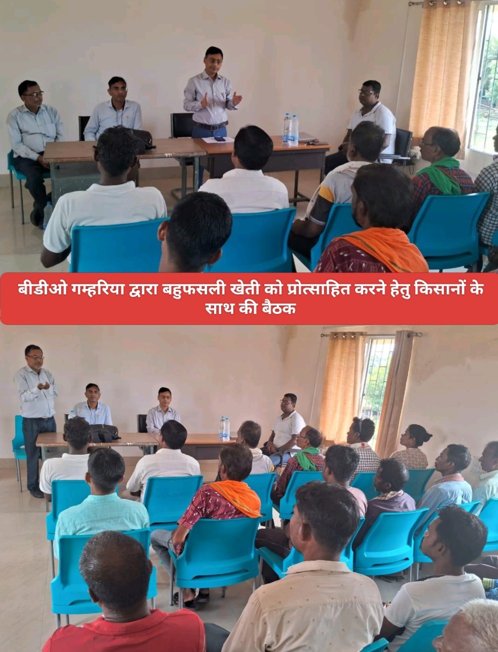 Saraikela (संजीव मेहता) : गम्हरिया प्रखंड के अंतर्गत गांजिया बराज स्थित किसान भवन में गुरुवार को प्रखंड विकास पदाधिकारी अभय कुमार द्विवेदी की अध्यक्षता में किसानों के साथ बैठक आयोजित की गई. बैठक में प्रखंड के ईटागढ़, नुआगढ़, चमारु, बांधडीह, बुरुडीह, यशपुर एवं दुगनी पंचायतों के किसान, किसान मित्र तथा कृषि विभाग एवं पशुपालन विभाग के पदाधिकारी उपस्थित हुए. बीडीओ ने किसानों को संबोधित करते हुए कहा कि वर्तमान कृषि प्रणाली में विविधीकरण आवश्यक है. उन्होंने कहा कि किसान पारंपरिक खेती के साथ-साथ मक्का, रागी, उड़द, मूंगफली, गन्ना जैसे मोटे अनाज एवं नकदी फसलों की खेती कर अपनी आमदनी में बढ़ोतरी कर सकते हैं.
