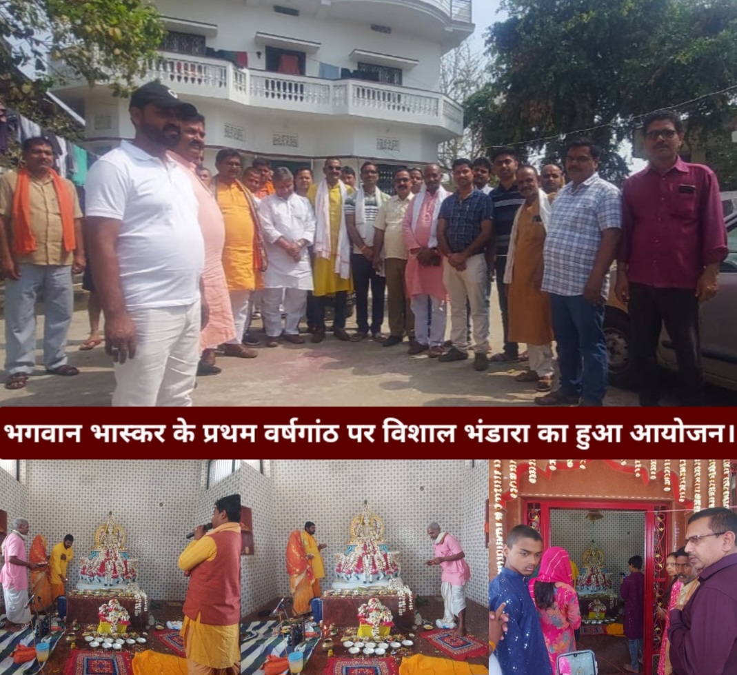 रोहतास बिक्रमगंज: प्रखंड क्षेत्र अंतर्गत निज ग्राम जोन्ही में भगवान भास्कर के प्रथम वर्षगांठ पर विशाल भंडारा का आयोजन किया गया । आपको बताते चलें कि एक वर्ष पूर्व में भगवान भास्कर के मूर्ति का प्राण प्रतिष्ठा भारत के महान मनीषी संत श्री श्री 1008 श्री त्रिदंडी स्वामी जी महाराज के परम शिष्य श्री लक्ष्मी प्रपन्न जीयर स्वामी जी महाराज के सानिध्य में संपन्न हुआ था । उसी के उपलक्ष्य में एक वर्ष होने के उपरांत भगवान भास्कर का प्रथम वर्षगांठ ग्रामीणों के सहयोग से हर्षोल्लास के साथ मनाया गया ।