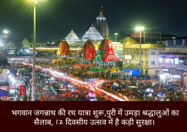 पुरी : पुरी में भगवान जगन्नाथ की ऐतिहासिक रथ यात्रा का भव्य आयोजन शुक्रवार से आरंभ हो रहा है, जो 12 दिनों तक चलेगा। इस पर्व में भाग लेने के लिए देश-विदेश से असंख्य श्रद्धालु पुरी पहुंच चुके हैं। अत्यधिक भीड़ को देखते हुए पहले दिन के कार्यक्रम तय समय से पहले प्रारंभ किए जाएंगे। सिंहद्वार अलसुबह ब्रह्ममुहूर्त से पूर्व खोल दिया जाएगा और फिर महाप्रभु को जगाने की विधि लगभग डेढ़ घंटे तक चलेगी।