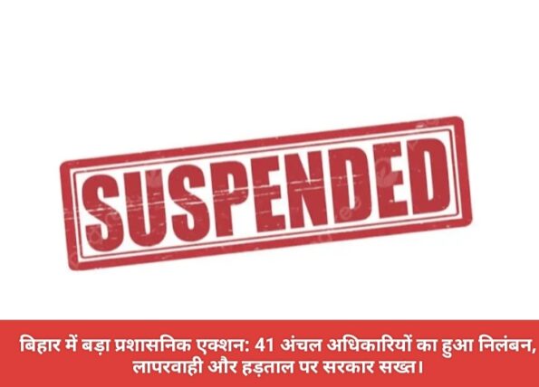 पटना : बिहार के राजस्व एवं भूमि सुधार विभाग ने कड़ा कदम उठाते हुए 41 अंचल पदाधिकारियों को तुरंत प्रभाव से निलंबित कर दिया है। आधिकारिक जानकारी के मुताबिक, इन अधिकारियों पर बार-बार निर्देशों की अनदेखी करने और सामूहिक विरोध के कारण सरकारी कार्यों में बाधा उत्पन्न करने का आरोप है।