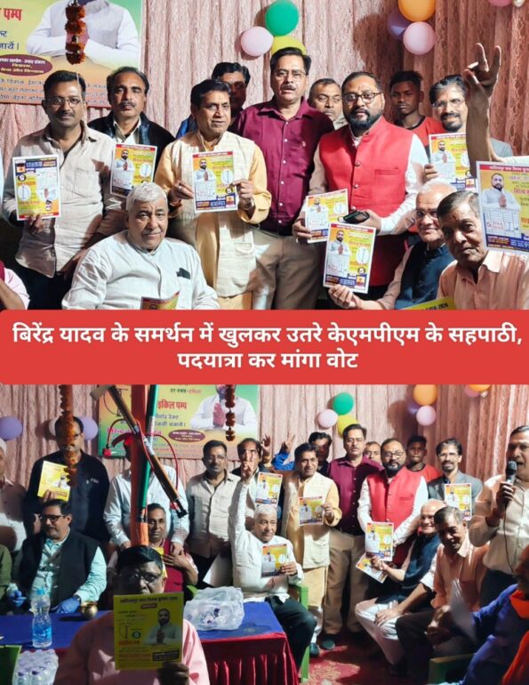 Saraikela (संजीव मेहता) : केएमपीएम स्कूल के साथियों ने वार्ड 17 से अपने सहपाठी बिरेंद्र कुमार सिंह यादव के समर्थन में चुनावी कार्यालय पहुंचकर अपना जोरदार समर्थन व्यक्त किया. साथ ही सभी साथियों ने क्षेत्र में पदयात्रा कर घर-घर जाकर लोगों से बिरेंद्र यादव के पक्ष में मतदान करने और आशीर्वाद देने की अपील की.