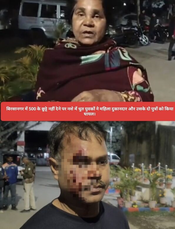 जमशेदपुर:जमशेदपुर के बिरसानगर थाना अंतर्गत जोन नंबर-4 स्थित एक दुकान में चेंज पैसे को लेकर युवकों ने महिला दुकानदार और उसके दो पुत्रों को मारपीट कर घायल करने का मामला बिरसानगर थाना पहुंचा। घटना बीती रात शंकर स्टोर में गठित हुई। जब दुकान में उसी क्षेत्र के रहने वाले यश नामक युवक 50 रुपए के सामान लेकर 500 रुपए दी,जिसके बाद छुट्टे को लेकर दोनों के बीच विवाद हो गया।