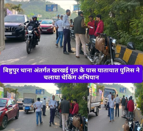 जमशेदपुर : जमशेदपुर जिले के बिष्टुपुर थाना क्षेत्र अंतर्गत खरखई पुल के पास यातायात पुलिस ने शुक्रवार को विशेष चेकिंग अभियान चलाया। यह अभियान सड़क सुरक्षा नियमों का पालन सुनिश्चित करने और यातायात व्यवस्था को सुदृढ़ बनाने के उद्देश्य से किया गया। चेकिंग के दौरान बिना हेलमेट वाहन चलाने वाले, बिना लाइसेंस के गाड़ी चलाने वाले, और वाहन के कागजात अधूरे रखने वालों पर विशेष ध्यान दिया गया। अभियान में कई दोपहिया और चारपहिया वाहनों की जांच की गई। यातायात पुलिस ने नियमों का उल्लंघन करने वालों के खिलाफ चालान जारी किए और उनसे मौके पर ही जुर्माना वसूला। इसके अलावा, पुलिस ने वाहन चालकों को सड़क सुरक्षा के प्रति जागरूक करने के लिए आवश्यक निर्देश भी दिए।
