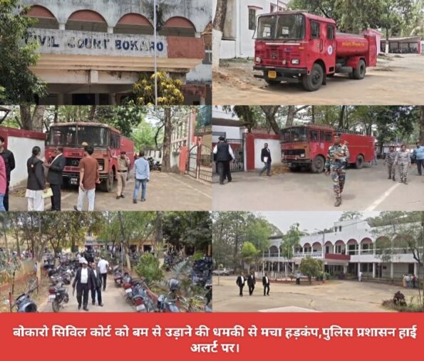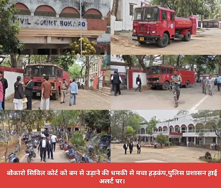 बोकारो : बोकारो सिविल कोर्ट को मेल के माध्यम से 14 साइनाइड बम लगाकर उड़ने की धमकी दिए जाने के बाद बोकारो पुलिस प्रशासन पूरी तरह से अलर्ट मोड में दिख रही है। कल मिली धमकी और अफवाह के बाद बोकारो सिविल कोर्ट में सुरक्षा व्यवस्था कड़ी कर दी गई है। कल मिली धमकी के बाद दो फायर ब्रिगेड की गाड़ी को न्यायालय के पास तैनात किया गया है।