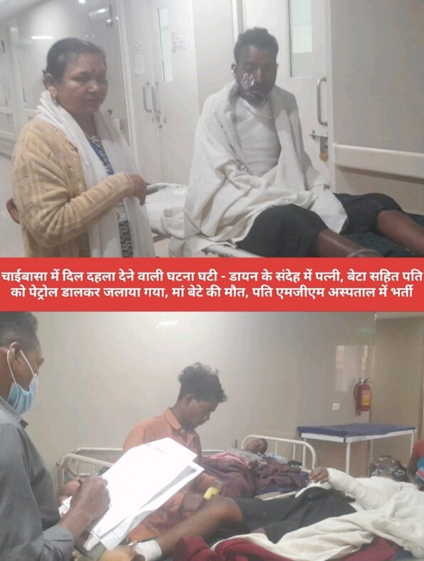 इस दौरान उसकी पत्नी और एक साल का बेटा भी आग में झुलस कर मर गया, साथ ही उसका पति कोल्हान सिंकू भी आग के चपेट में आकर बुरी तरह से जल गया. इस घटना की सूचना संबंधित थाना को दी गई है. मौके पर पुलिस पहुंच कर तीन लोगों को गिरफ्तार कर जेल भेज दिया है. वहीं आग से जलकर जख्मी हुए व्यक्ति को चाईबासा सदर अस्पताल में भेजा गया. स्थिति गंभीर होने पर मंगलवार को उसे बेहतर इलाज के लिए जमशेदपुर एमजीएम अस्पताल रेफर किया गया, जहां डालसा सचिव कुमार सौरभ त्रिपाठी के निर्देश पर पीएलसी जोबा रानी बास्के की मदद से डॉक्टर की निगरानी में उसे भर्ती कराया गया है.