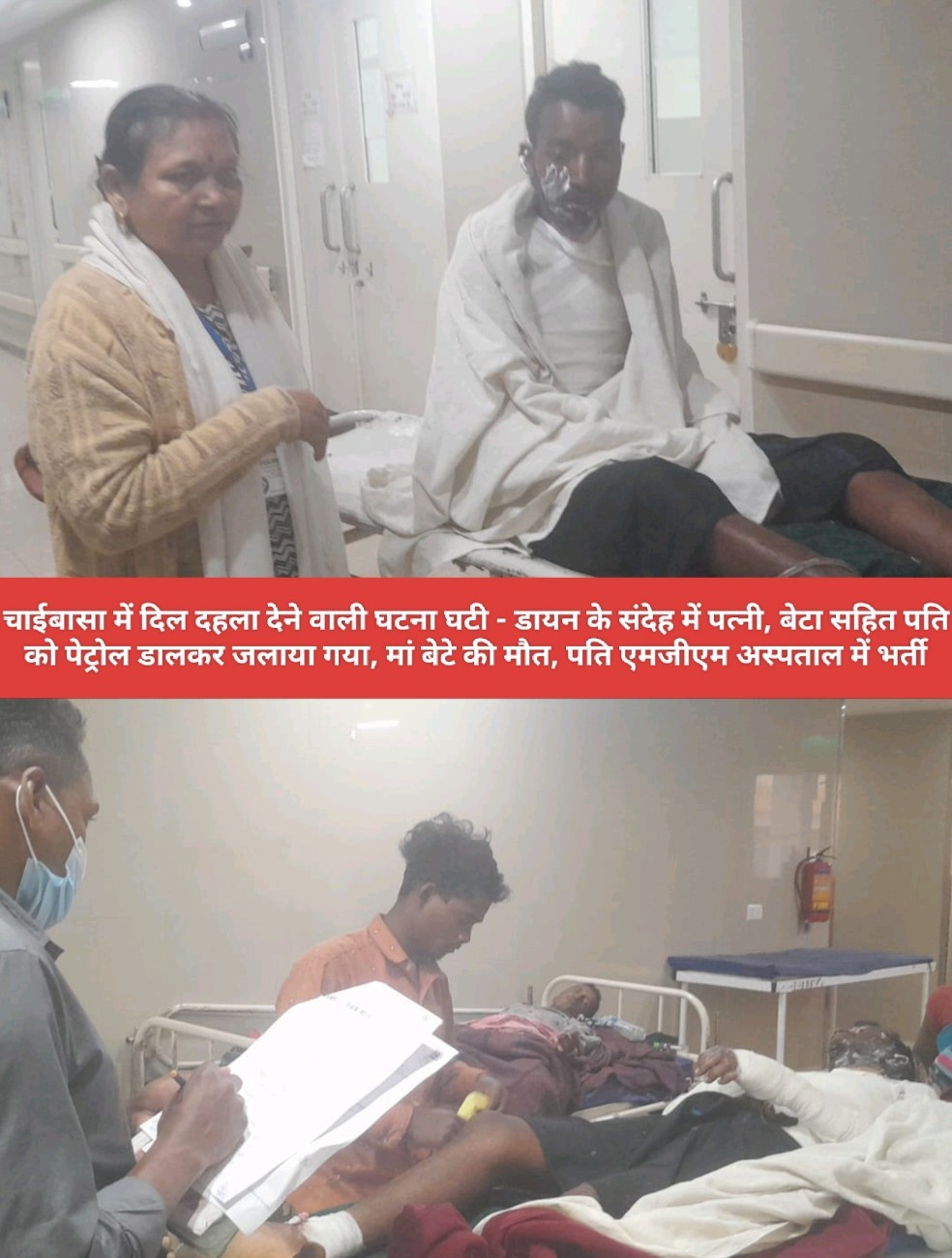 Saraikela (संजीव मेहता) : पश्चिमी सिंहभूम जिला के रहने वाली एक महिला के ऊपर डायन के संदेह पर पेट्रोल डालकर जलाया गया. जिसमें महिला और उसके एक साल का बेटा आग में जल कर दम तोड़ दिया और उसके पति भी आग में बुरी तरह से झुलस गया है. झालसा एवं डालसा के निर्देश पर बेहतर इलाज के लिए उसे एमजीएम अस्पताल जमशेदपुर में शुक्रवार को डालसा पीएलवी जोबा रानी बास्के के सहयोग से भर्ती कराया गया है. प्राप्त जानकारी के अनुसार तीन से चार लोग बीते मंगलवार को रात्रि के समय पीड़ित व्यक्ति कोल्हान सिंकू (27) से बोला कि तुम्हारा बीबी डायन है उसे जान ले मार देंगे. विरोध करने पर पेट्रोल डालकर उसे जला भी दिया.