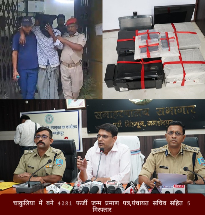 जमशेदपुर : पूर्वी सिंहभूल जिला प्रशाशन ने फर्जी जन्म प्रमाणपत्र निर्गत होने मामले में चाकुलिया से 5 आरोपियों को गिरफ्तार किया है। इस फर्जीबकारी को लेकर जमशेदपुर समाहरणालय में जिले के उपायुक्त अन्नय मित्तल और एसएसपी किशोर कौशल ने पत्रकारों को जानकारी दी कि शिक्षा के अधिकार अधिनियम के तहत विद्यालयों में बीपीएल बच्चों के नामांकन के लिए जमा किए जन्म प्रमाण पत्र की जांच के क्रम में यह मामला प्रकाश में आया, जिसके पश्चात एसडीओ घाटशिला के नेतृत्व में जांच टीम गठित कर चाकुलिया प्रखंड के मटियाबांधी पंचायत से निर्गत प्रमाण पत्रों की जांच कराई गई।