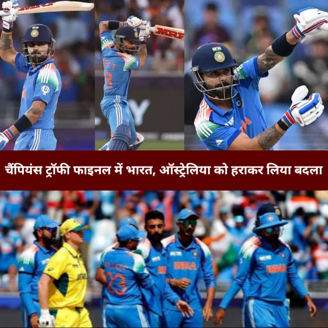 ICC Champions Trophy : भारत ने शानदार प्रदर्शन करते हुए चैंपियंस ट्रॉफी के फाइनल में जगह बना ली है। विराट कोहली की बेहतरीन पारी और हार्दिक पांड्या की ताबड़तोड़ बल्लेबाजी ने ऑस्ट्रेलिया की ट्रॉफी जीतने की उम्मीदों को तोड़ दिया। इस जीत के साथ भारत ने विश्व कप में मिली हार का हिसाब भी बराबर कर लिया। ऑस्ट्रेलिया ने पहले बल्लेबाजी करते हुए 265 रनों का लक्ष्य रखा था, जिसे भारतीय टीम ने 6 विकेट खोकर हासिल कर लिया।