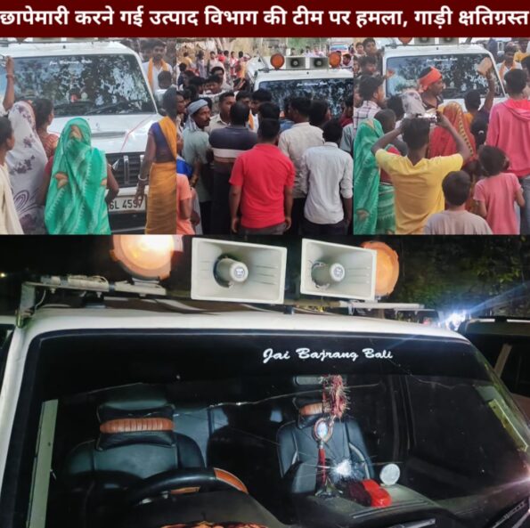 काराकाट : बिक्रमगंज थाना क्षेत्र के दुर्गाडीह गांव में छापेमारी करने गई उत्पाद विभाग टीम पर गांव वालों ने हमला कर दिया। हालांकि हमला में किसी की घायल नही बताया जा रहा है। लेकिन छापेमारी करने गई एक गाड़ी क्षतिग्रत हो गया। घटना के संबंध में बताया जाता है कि उत्पाद पुलिस रविवार की शाम दुर्गाडीह गांव में राधा किशुन राम का पुत्र हरेश राम के घर छापेमारी में गई थी। छापेमारी के दौरान पुलिस ने घर का सामान तितर बितर कर दिया। ग्रामीणों की मानें तो जिनके घर पुलिस गई थी उनके घर कभी कोई शराब के धंधे से लगाव नहीं रहा है।