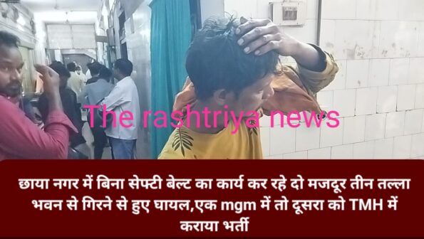 इसी दौरान पीछे से श्रीनाथ भी मटेरियल लेकर ऊपर चढ़ रहा था जिसके चपेट में वह भी आ गया और जमीन पर आ गिरा जिसमें श्रीनाथ गंभीर रूप से घायल हो गया ,आनन फानन में भवन मालिक ने दोनों घायलों को mgm अस्पताल लेकर पहुंचे जहां श्रीनाथ की गंभीर स्थिति को देखते हुए उसे TMH में भर्ती कराया गया है, वही शिबू का इलाज mgm में किया जा रहा है।