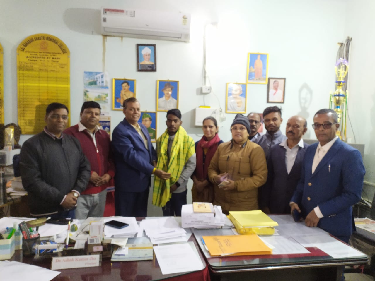 जमशेदपुर : एल बी एस एम कॉलेज जमशेदपुर द्वारा विगत वर्ष बिरसा मुंडा कंपीटीसन अकादमी की शुरुआत की गई थी जिसमें यहां के विद्यार्थियों को निशुल्क कोचिंग की व्यवस्था की गई है। यहां के शिक्षक एवं बाहर के कुछ शिक्षक स्वेक्षा से उनका क्लास लेते हैं। विद्यार्थी प्रतियोगिता परिक्षा में शामिल होना शुरू कर दिए हैं उसी के परिणाम स्वरूप संथाली विभाग से सगुण हांसदा ने नेट की परीक्षा उत्तीर्ण कर महाविद्यालय का नाम रौशन किया है। हांसदा अभी अपेयरिंग विद्यार्थी है। प्राचार्य डॉ अशोक कुमार झा ने बेसरा को शॉल ओढ़ाकर सम्मानित किया और उसके उज्ज्वल भविष्य के लिए आशीर्वाद दिया। उन्होंने कहा कि अगर विद्यार्थी चाहे तो वह सब कुछ प्राप्त कर सकता है।शिक्षक का काम उनका मार्गदर्शन करना है।इस अवसर पर डा डी के मित्रा, डा दीपांजय श्रीवास्तव, डा विनय कुमार गुप्ता ,प्रो पुरुषोत्तम प्रसाद डा मौसमी पॉल,प्रो अरविंद पंडित,प्रो रितु,प्रो संजीव मुर्मू उपस्थित थे। सभी ने बेसरा को बधाई दी।