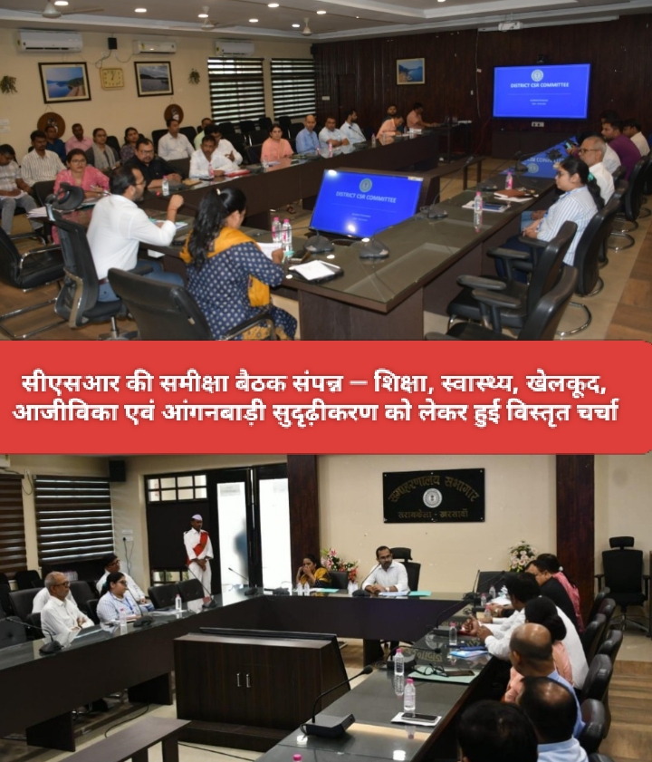 Saraikela (संजीव मेहता) : समाहरणालय सभागार में उपायुक्त सह जिला दंडाधिकारी नितिश कुमार सिंह की अध्यक्षता में कॉरपोरेट सामाजिक उत्तरदायित्व (CSR) से संबंधित समीक्षा बैठक आयोजित की गई. बैठक में जिले में कार्यरत विभिन्न औद्योगिक संस्थानों के प्रतिनिधियों की उपस्थिति रही. उपायुक्त ने सभी औद्योगिक इकाइयों को सीएसआर अंतर्गत संचालित परियोजनाओं एवं प्रस्तावित योजनाओं की अद्यतन स्थिति प्रस्तुत करने का निर्देश दिया.