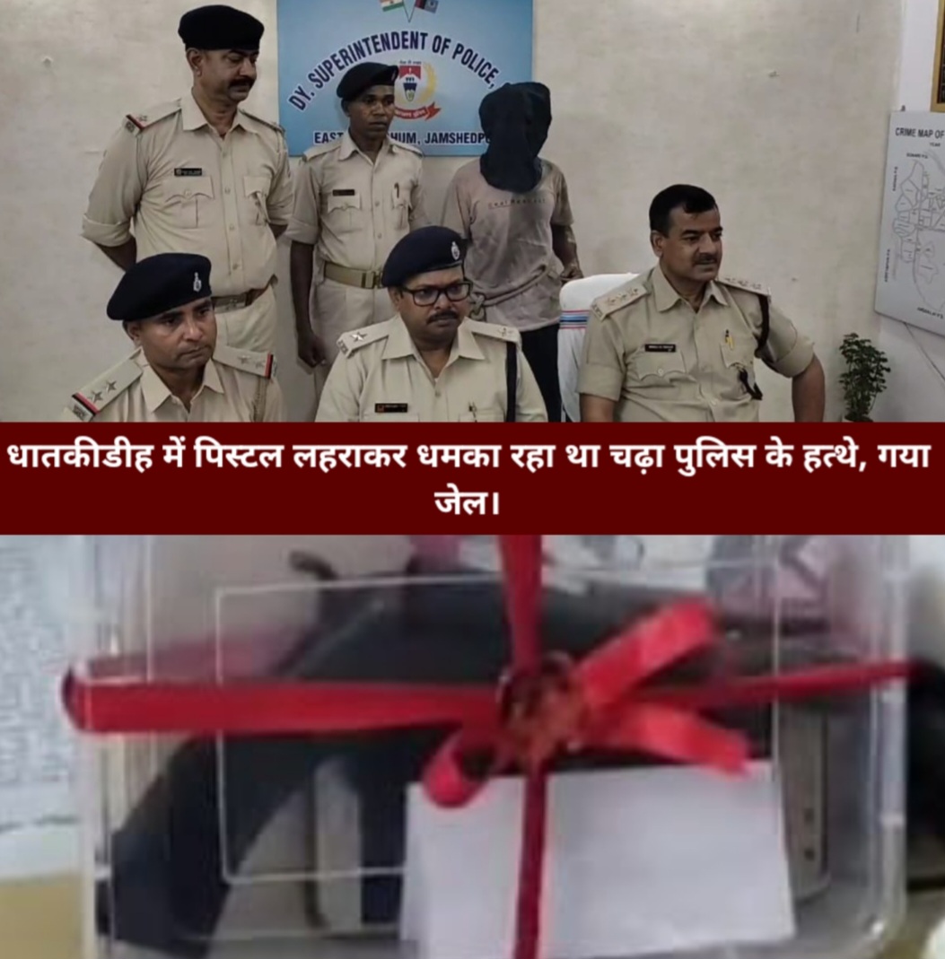 जमशेदपुर : बीते दिन बिष्टुपुर थाना अंतर्गत धातकीडीह में एक युवक द्वारा पिस्टल चमकते हुए लोगों को धमकी देने के मामले में पुलिस ने हथियार के साथ युवक को गिरफ्तार किया है।प्रेस कॉन्फ्रेंस का डीएसपी मनोज कुमार ठाकुर ने जानकारी दी की 15 मार्च को गुप्त सूचना मिली कि मोटरसाइकिल में सवार एक युवक पिस्टल लहराकर घूम रहा है और लोगों को धमकी भी दे रहा है,