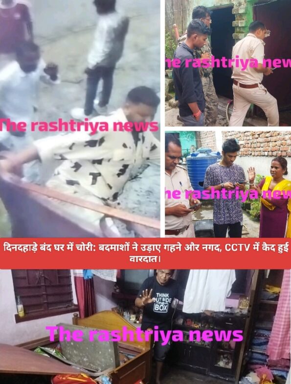 दोपहर करीब 12 बजे लौटने पर उन्होंने घर का दरवाजा टूटा पाया और सारा सामान बिखरा हुआ मिला। घर मालिक विनोद कुमार ने बताया कि उनकी मां कैंसर से पीड़ित हैं और उन्हें इलाज के लिए पांच अक्टूबर को शहर से बाहर ले जाना था। इसके लिए घर में 55,000 रुपये नगद और करीब 60,000 रुपये के जेवर रखे हुए थे। यह सारी घटना सीसीटीवी कैमरे में कैद हो गई है, जिसमें साफ दिख रहा है कि बदमाश मुख्य दरवाजे को लात मारकर तोड़ते हैं और भीतर घुसकर अलमारी से सामान निकालते हैं। पुलिस मौके पर पहुंचकर जांच में जुट गई है और सीसीटीवी फुटेज के आधार पर आरोपियों की पहचान कर गिरफ्तारी की कोशिश की जा रही है।