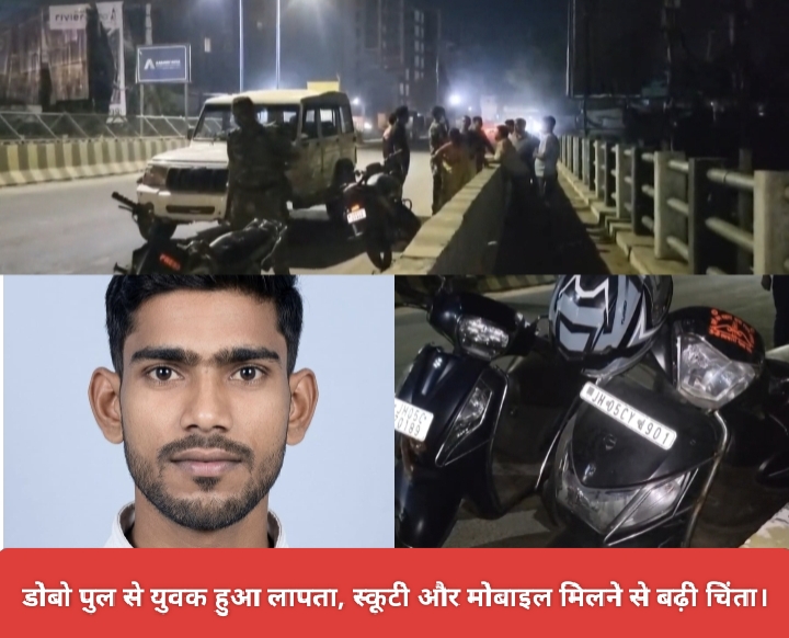 जमशेदपुर : जमशेदपुर के डोबो पुल पर मंगलवार देर रात एक युवक के रहस्यमय तरीके से लापता होने का मामला सामने आया है, जिससे इलाके में सनसनी फैल गई है। मौके से युवक की स्कूटी, मोबाइल फोन और चाबी बरामद होने के बाद परिजनों ने अनहोनी की आशंका जताई है। मिली जानकारी के अनुसार, परसूडीह के गोलपहाड़ी निवासी 26 वर्षीय अविनाश कुमार मंगलवार रात करीब 11 बजे से लापता हैं।