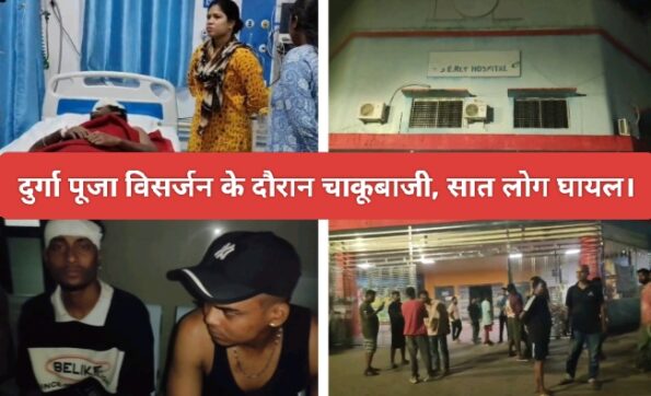 चाईबासा: दुर्गा पूजा विसर्जन के दौरान शुक्रवार रात चक्रधरपुर में दो गुटों के बीच हिंसक झड़प हो गई, जिसमें चाकूबाजी की घटना में सात लोग घायल हो गए। घायलों में एक युवक की हालत गंभीर बताई जा रही है।घटना रेलवे हरिजन बस्ती दुर्गा पूजा समिति और एक अन्य पूजा पंडाल के सदस्यों के बीच कहासुनी से शुरू हुई, जो देखते ही देखते हिंसक झड़प में बदल गई।