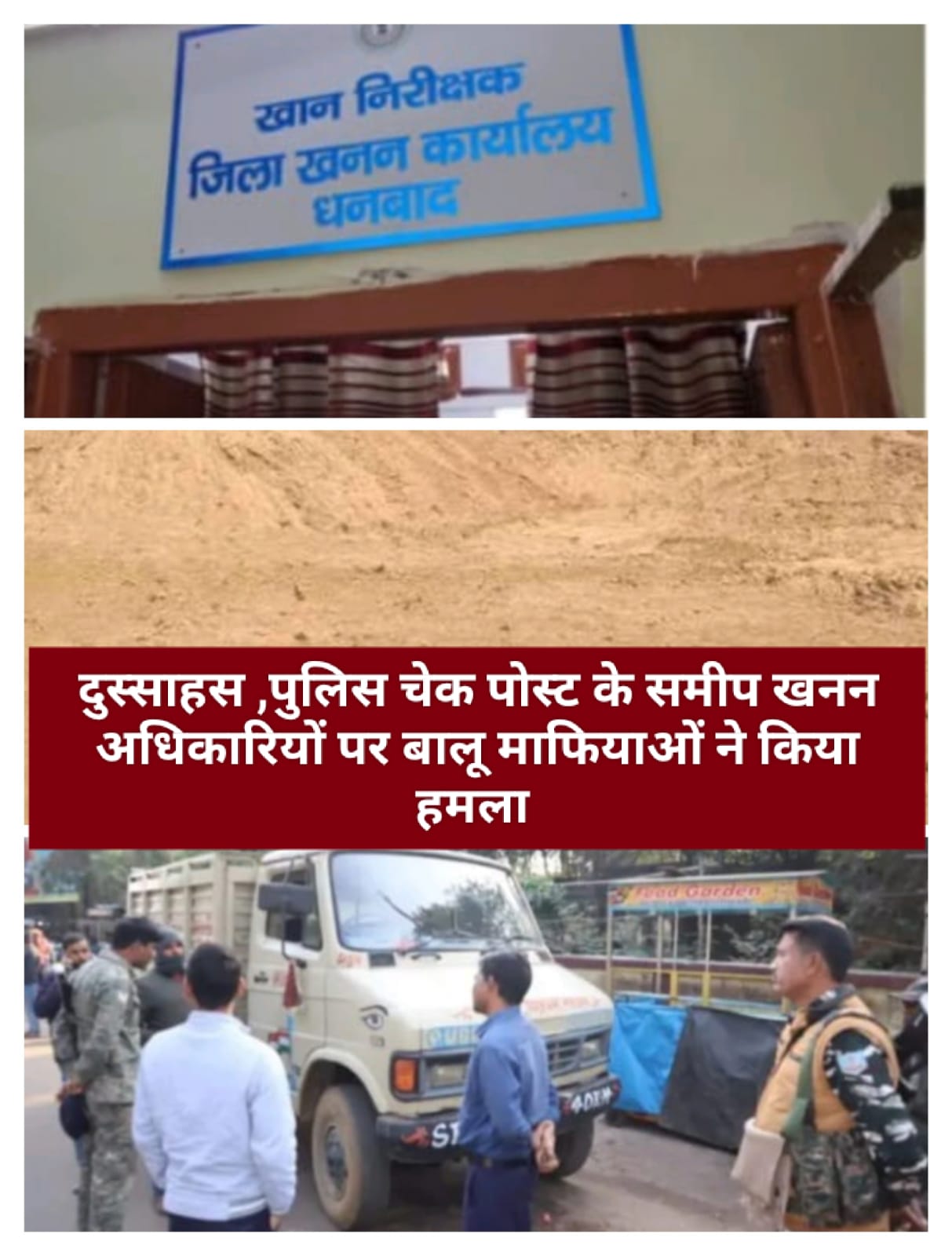 धनबाद : राज्य के बालू माफियाओं का मनोबल इस कदर बढ़ा हुआ है कि आए दिन खनन विभाग सहित अधिकारियों पर हमले कर रहे हैं और अधिकारी चोटिल होकर घायल हो रहे हैं। खासकर धनबाद जिले में बालू माफिया बेखौफ होकर बेलगाम हो गए हैं। झारखंड के धनबाद जिले में बालू माफिया ने एक बार फिर अंचलाधिकारी के बाद खनन विभाग की टीम पर हमला बोल दिया। घटना गुरुवार सुबह की है। जब खनन विभाग की टीम अवैध बालू परिवहन की सूचना पर धनबाद व सरायढेला थाना क्षेत्र में छापामारी की। धनबाद थाना में 4 वाहन जब्त करने के बाद टीम ने जैसे ही सरायढेला थाना क्षेत्र के बलियापुर रोड स्थित बालाजी पेट्रोल पंप के पास अवैध बालू लदा दो वाहन जब्त किया वैसे ही बालू माफिया गैंग धारदार हथियार, बेलचा से खनन विभाग की टीम पर हमला कर दिया। जिससे दो खनन निरीक्षक गंभीर रूप से घायल हो गए। एक ने भाग कर जान बचाई। बालू माफिया राजेंद्र सिंह,राहुल सिंह, असीम मंडल, राकेश मंडल सहित अन्य बालू तस्करों का नाम इस घटना को अंजाम देने में खनन निरीक्षक ने बताया है और उनके उपर नामजद प्राथमिकी दर्ज करवाई हैं।