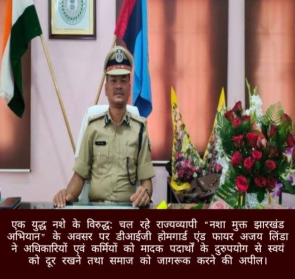 झारखंड ( रांची ) : आज के बदलते इस दौर में समाज भी तेजी से प्रगति कर रहा है, लेकिन इसके साथ ही नशे की लत भी एक गंभीर सामाजिक बीमारी बनकर उभर रही है। युवा वर्ग, जो देश का भविष्य है, नशे की गिरफ्त में आकर अपना जीवन बर्बाद कर रहे है। उक्त बातें डीआईजी फायर एंड होम गार्ड अजय लिंडा ने नशा मुक्त झारखंड अभियान के दौरान कहीं।
