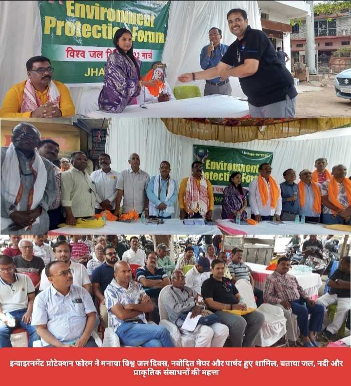 Saraikela (संजीव मेहता) : सामाजिक और सांस्कृतिक संस्था इन्वाइरनमेंट प्रोटेक्शन फोरम ने रविवार को विश्व जल दिवस मनाया. इस मौके पर मुख्य अतिथि के रूप में नवोदित मेयर संजय सरदार मौजूद रहे. विशिष्ट अतिथि के रूप में जन कल्याण मोर्चा अध्यक्ष ओम प्रकाश, समाजसेवी विजय शंकर मिश्रा, वार्ड 17 की पार्षद नीतू शर्मा, वार्ड 30 के सुधीर चौधरी शामिल थे. अतिथियों ने जल, नदी और प्राकृतिक संसाधनों की महत्ता बताया. इन्हें निरंजन मिश्रा, देवांग चंद्र मुखी, मनोज कुमार और दीपेंद्र नाथ ओझा ने भगवत गीता और अंग वस्त्र देकर सम्मानित किया.