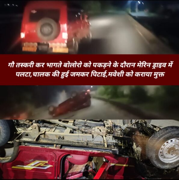 बताया जाता है कि गौ रक्षा समिति के सदस्यों को पिछले कुछ दिनों से मवेशी चोरी होने की शिकायत मिल रही थी जिसे लेकर युवकों ने रात जग्गा कर गौ तस्करों को पकड़ने की ठानी,इसी क्रम में बीती रात 3:00 बजे एक महिंद्रा बोलेरो चार पहिया वाहन को गौ तस्करी करके कदमा मरीन ड्राइव गैस गोदाम की ओर जाते देखा। जिसके बाद समिति के युवकों ने मोटरसाइकिल से वाहन का पीछा किया इसी क्रम में भागने के दौरान बोलोरो डिवाइडर से टकराकर पलट गई। जिसमें आधा दर्जन मवेशी बंधी हुई थी गाड़ी पलटने से वाहन चालक भी उसमें फंस गया जिसे लोगों ने उसकी जमकर पिटाई कर पुलिस के हवाले कर दिया गया।समिति इन गौ तस्करों के खिलाफ कदम थाने में मामला दर्ज कराया ।बता दे कि समिति की ओर से कई बार इन तस्करों को पुलिस के हवाले किए जाने के बावजूद जमानत में छूट जाते है।
