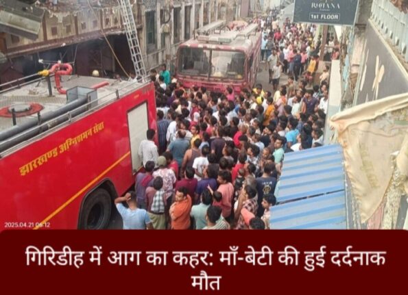 गिरिडीह : झारखंड के गिरिडीह जिले में सोमवार की सुबह एक त्रिस्तरीय भवन में भीषण आग लगने से एक महिला और उसकी पुत्री की जान चली गई। अधिकारियों के अनुसार, यह हादसा मारवाड़ी मोहल्ले में हुआ, जहां यह भवन एक वस्त्र बिक्री केंद्र के साथ-साथ निवास स्थान के रूप में भी प्रयुक्त होता था। पुलिस का कहना है कि तड़के लगभग तीन बजे आग लगने की खबर मिली।