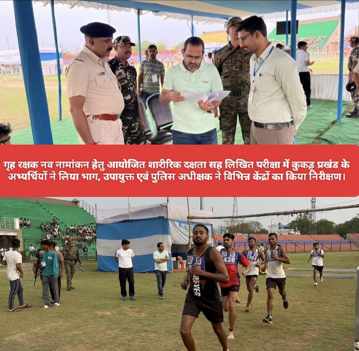 Saraikela (संजीव मेहता) : सरायकेला–खरसावाँ जिला अंतर्गत गृह रक्षक नव नामांकन हेतु आयोजित शारीरिक दक्षता सह लिखित परीक्षा कार्यक्रम के तहत आज दिनांक 17 मार्च 2026 को बिरसा मुंडा स्टेडियम, सरायकेला में कुकड़ू प्रखंड के अभ्यर्थियों द्वारा परीक्षा में भाग लिया गया. मौके पर उपायुक्त नीतिश कुमार सिंह एवं पुलिस अधीक्षक मुकेश लुनायत द्वारा संयुक्त रूप से विभिन्न शारीरिक परीक्षा केंद्र स्थलों का निरीक्षण किया गया तथा लिखित परीक्षा केंद्र का अवलोकन कर व्यवस्थाओं का जायजा लिया गया.