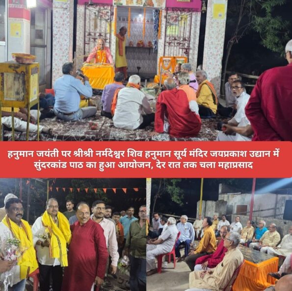 Saraikela (संजीव मेहता) : हनुमान जयंती पर गुरुवार 2 अप्रैल गुरुवार को श्रीश्री नर्मदेश्वर शिव हनुमान सूर्य मंदिर जयप्रकाश उद्यान आदित्यपुर में सुंदरकांड पाठ का आयोजन हुआ. इस मौके पर अवधेश्वर ठाकुर की रामायण मंडली द्वारा संगीतमय सुंदरकांड पाठ किया गया. इस मौके पर मंदिर कमेटी सभी पदाधिकारी एवं आध्यात्मिक साधक मित्र मौजूद रहे.