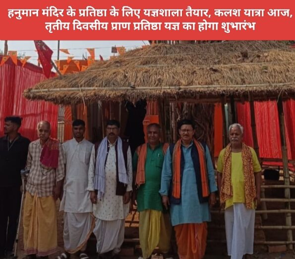 Saraikela (संजीव मेहता) : श्रीश्री संकट मोचन हनुमान मंदिर रोड नंबर 27 आदित्यपुर 2 में आज गाजेबाजे के साथ विशाल कलश यात्रा निकाली जाएगी. यहां त्रिद्विसीय प्राण प्रतिष्ठा का कार्यक्रम प्रारंभ होगा. प्राण प्रतिष्ठा यज्ञ के प्रधान आचार्य डाॅ० रमेश कुमार उपाध्याय के साथ सहायक आचार्य पंडित विजय पाण्डेय उर्फ पपु, पंडित धर्मेन्द्र पाण्डेय, पं सुरज पाण्डेय, पं पवन पाठक आदि वैदिक मंत्रोच्चारण के साथ विधि विधान से प्रतिष्ठा कार्यक्रम सम्पन्न कराएंगे. डाॅ० रमेश कुमार उपाध्याय ने बताया कि 26 फरवरी को कलश यात्रा, पंचांग पूजन, मंडप प्रवेश, गणेश अम्बिका पूजन, अग्नि आह्वान के साथ अन्य देवताओं का पूजन किया जाएगा.
