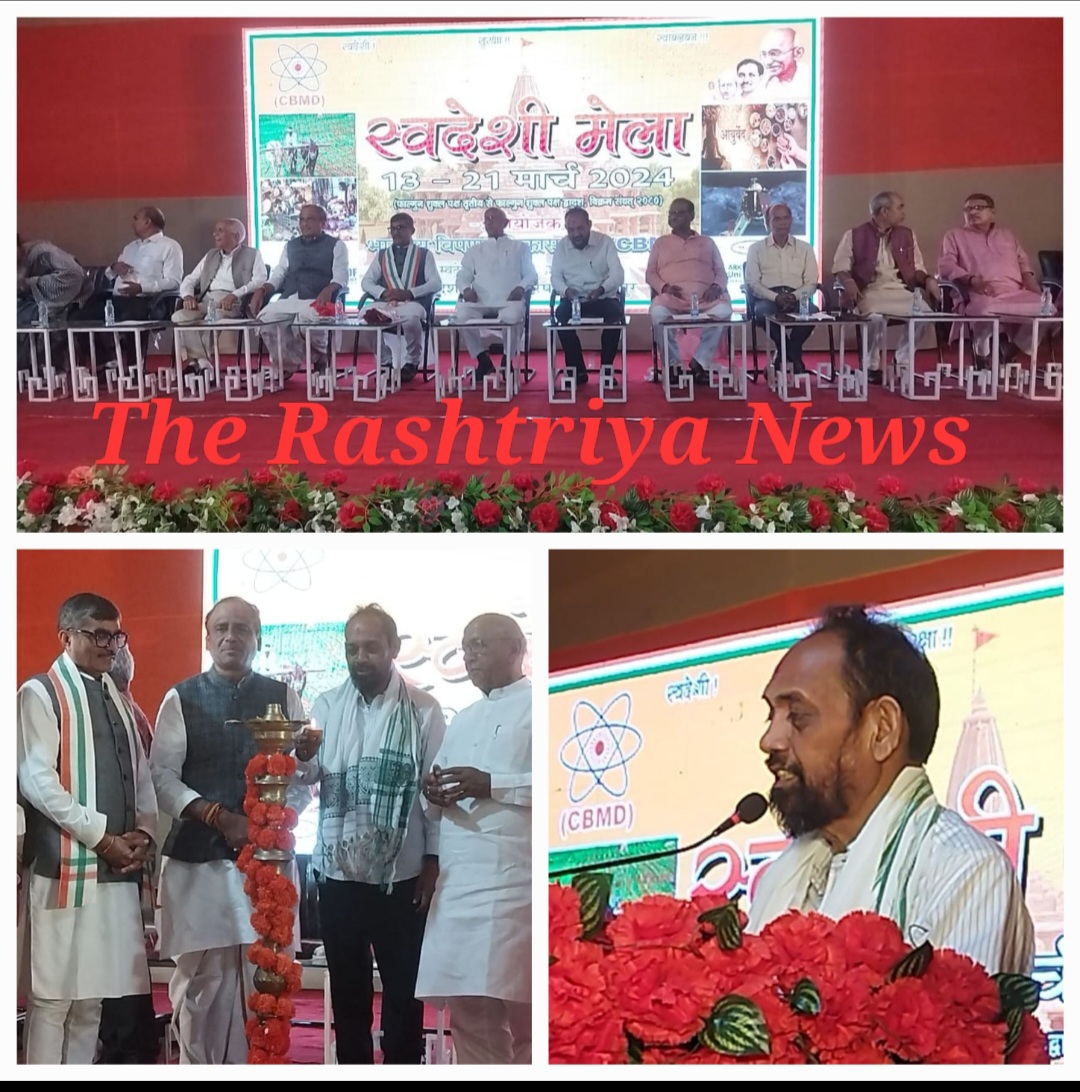 जमशेदपुर के बिष्टुपुर गोपाल मैदान में भारतीय विपणन फाउंडेशन और स्वदेशी जागरण मंच के संयुक्त तत्वाधान में17वां 9दिवसीय स्वदेशी मेला का उद्घाटन गोपाल मैदान में हुआ उद्घाटन समारोह में बतौर मुख्य अतिथि जमशेदपुर के सांसद विद्युत वरण महतो, पूर्वी के विधायक सरयू राय, खादी ग्रामोद्योग आयोग के पूर्वी भारत के चेयरमैन मनोज सिंह , स्वदेशी मेला के अखिल भारतीय संयोजक सचिन्द्र बरियार सहित गणमान्य लोग उपस्थित थे जिनके द्वारा द्वीप प्रज्वलित कर मेला का उद्घाटन किया गया यह मेला 13 से 21 मार्च तक चलेगी जिसमे देश के 17 राज्यों के उत्पाद 300 स्टॉल के माध्यम से लोगो को उपलब्ध होगी वहीं प्रतिदिन विभिन्न प्रतियोगिता एवम सांस्कृतिक कार्यक्रम का लोग आनंद उठा सकेंगे इस मौके पर सांसद ने कहा की इस तरह आयोजन करना आयोजको का सराहनीय कदम है लेकिन लोगो के बीच स्वदेशी सामानों के प्रति प्रेरित करने के लिए और भी कई आवश्यक कदम उठानी है देश विकास की ओर अग्रसर है एसे में हर एक कार्य और हर एक व्यक्ति स्वदेशी अपनाए इसके लिए और प्रचार प्रसार की आवश्यकता है।