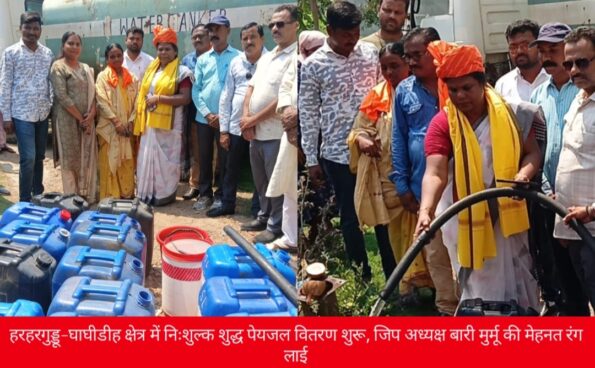 Saraikela (संजीव मेहता) : बढ़ती गर्मी और पेयजल संकट को देखते हुए हरहरगुड्डू एवं घाघीडीह क्षेत्र में शुक्रवार को एक सराहनीय पहल की शुरुआत की गई. पूर्वी सिंहभूम जिला परिषद अध्यक्ष बारी मुर्मू ने तारापोर कंपनी के पानी टैंकर का विधिवत नारियल फोड़कर और अगरबत्ती दिखाकर उद्घाटन किया. इसके साथ ही जुस्को के शुद्ध पेयजल का निःशुल्क वितरण शुरू किया गया. इस दौरान सैकड़ों की संख्या में स्थानीय लोग गैलन, जार और बाल्टी लेकर कतारबद्ध नजर आए, जिन्हें शुद्ध पानी उपलब्ध कराकर उनकी प्यास बुझाने का कार्य किया गया.