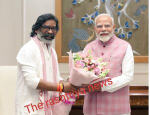प्रतीक सिंह / नई दिल्ली : झारखंड के मुख्यमंत्री हेमंत सोरेन ने सोमवार को नई दिल्ली में प्रधानमंत्री नरेंद्र मोदी से मुलाकात की। इस मुलाकात में हेमंत सोरेन ने प्रधानमंत्री को फूलों का गुलदस्ता भेंट किया। यह मुलाकात प्रधानमंत्री कार्यालय में हुई, जो हेमंत सोरेन के नए पदभार संभालने के बाद हुई। इसे भारतीय राजनीति में एक महत्वपूर्ण शिष्टाचार मुलाकात कहां जाता है।क्यों कि यह दोनों नेताओं की पहली मुलाकात थी इसलिए हेमंत सोरेन ने इसे सोशल मीडिया पर भी साझा किया।