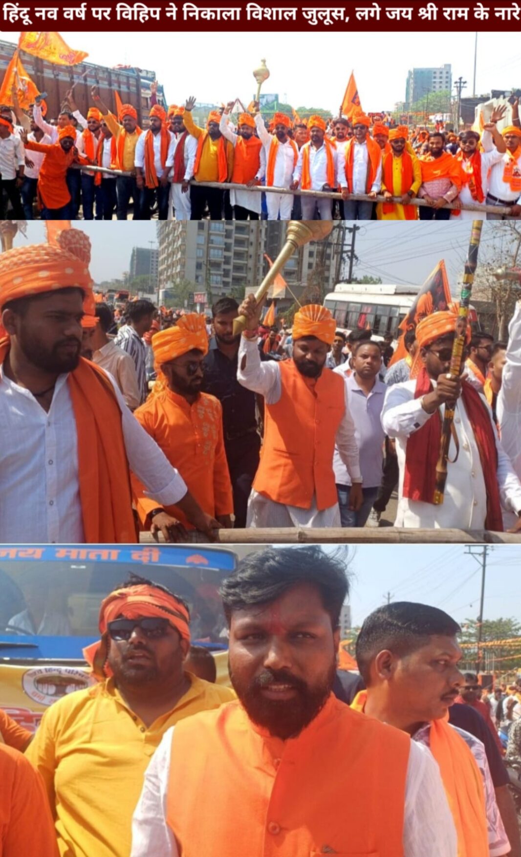 Saraikela (संजीव मेहता) : हिंदू नव वर्ष के अवसर पर शनिवार को विश्व हिंदू परिषद और अन्य हिंदूवादी संगठनों द्वारा विशाल शोभा यात्रा निकाली गई. जिसमें हजारों की संख्या में लोग शामिल हुए और जय श्रीराम के गगनभेदी नारे लगाए. इस रैली का नेतृत्व विश्व हिंदू परिषद के जिला अध्यक्ष डॉ जे एन दास ने की. रैली आदित्यपुर टोल ब्रिज मोड़ मुख्य सड़क से होकर आदित्यपुर के विभिन्न क्षेत्रों में भ्रमण किया. रैली में भगवा झंडा लिए हजारों की संख्या में युवक शामिल हुए .