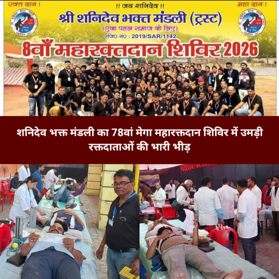 सरायकेला (संजीव मेहता) : श्री शनिदेव भक्त मंडली का 78वां मेगा महारक्तदान शिविर 22 फरवरी रविवार को सुवर्णरेखा परियोजना भवन प्रशासक कार्यालय आदित्यपुर में सम्पन्न हुआ.रक्तदान शिविर में इस बार रक्तदाताओं को लाने वाले लोगों को पुरस्कार दिया जा रहा है. रक्तदाताओं को ट्रॉफी देकर पुरस्कृत भी किया गया. रक्तदान शिविर सुबह 8 से शाम 6 बजे तक आयोजित हुआ. इस शिविर के आयोजन में प्रतीक संघर्ष फाउंडेशन और जमशेदपुर ब्लड सेंटर सहयोग कर रही है. इस बार 1502 यूनिट रक्त संग्रह करने का लक्ष्य रखा गया है. जिसमें मुख्य रूप से 200 नए रक्तदाताओं को जोड़ा जाएगा.
