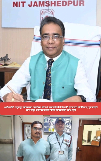 Saraikela (संजीव मेहता) : भारतीय प्रौद्योगिकी संस्थान (आईआईटी) खड़गपुर के कोलकाता एक्स्टेंसन सेंटर के कर्मचारियों ने अपनी ईमानदारी और कर्तव्यनिष्ठा का एक अनुपम उदाहरण प्रस्तुत किया है. उन्होंने राष्ट्रीय प्रौद्योगिकी संस्थान (एनआईटी) जमशेदपुर के निदेशक प्रोफेसर (डॉ.) गौतम सूत्रधर की खोई हुई बेशकीमती हीरे की अंगूठी को न केवल ढूंढ़ निकाला, बल्कि पूरी सुरक्षित अवस्था में उन्हें लौटाकर एक मिसाल कायम की.